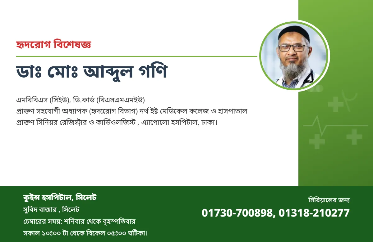 প্রাক্তণ সিনিয়র রেজিস্ট্রার ও কার্ডিওলজিস্ট , এ্যাপোলো হসপিটাল, ঢাকা।