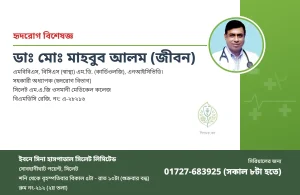 এমবিবিএস, বিসিএস (স্বাস্থ্য) এম.ডি. (কার্ডিওলজি), এনআইসিভিডি।
