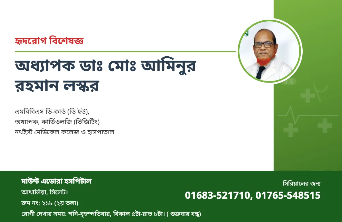 রোগী দেখার সময়: শনি-বৃহস্পতিবার, বিকাল ৫টা-রাত ৮টা। ( শুক্রবার বন্ধ)