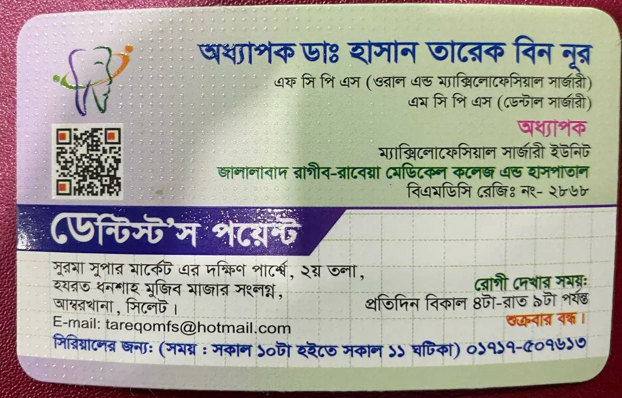 ডেন্টিস্ট'স পয়েন্ট সুরমা সুপার মার্কেট এর দক্ষিণ পার্শ্বে, ২য় তলা,আম্বরখানা সিলেট।