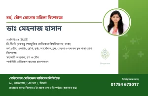 চেম্বারের সময়: বিকাল ৫ টা থেকে রাত ৮ টা পর্যন্ত। (শুক্রবার বন্ধ)