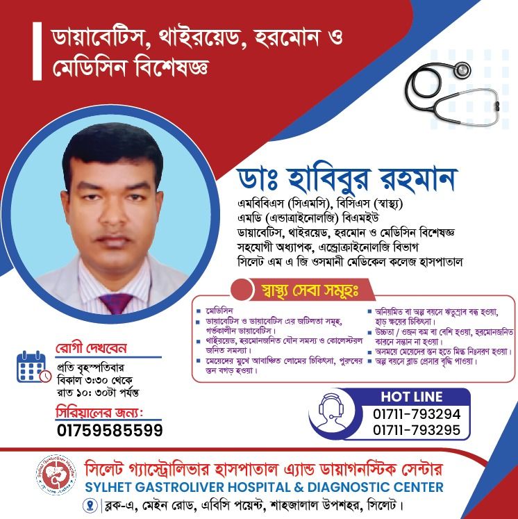 সহকারী অধ্যাপক (ডায়াবেটিস, থাইরয়েড ও হরমোন রোগ বিভাগ)