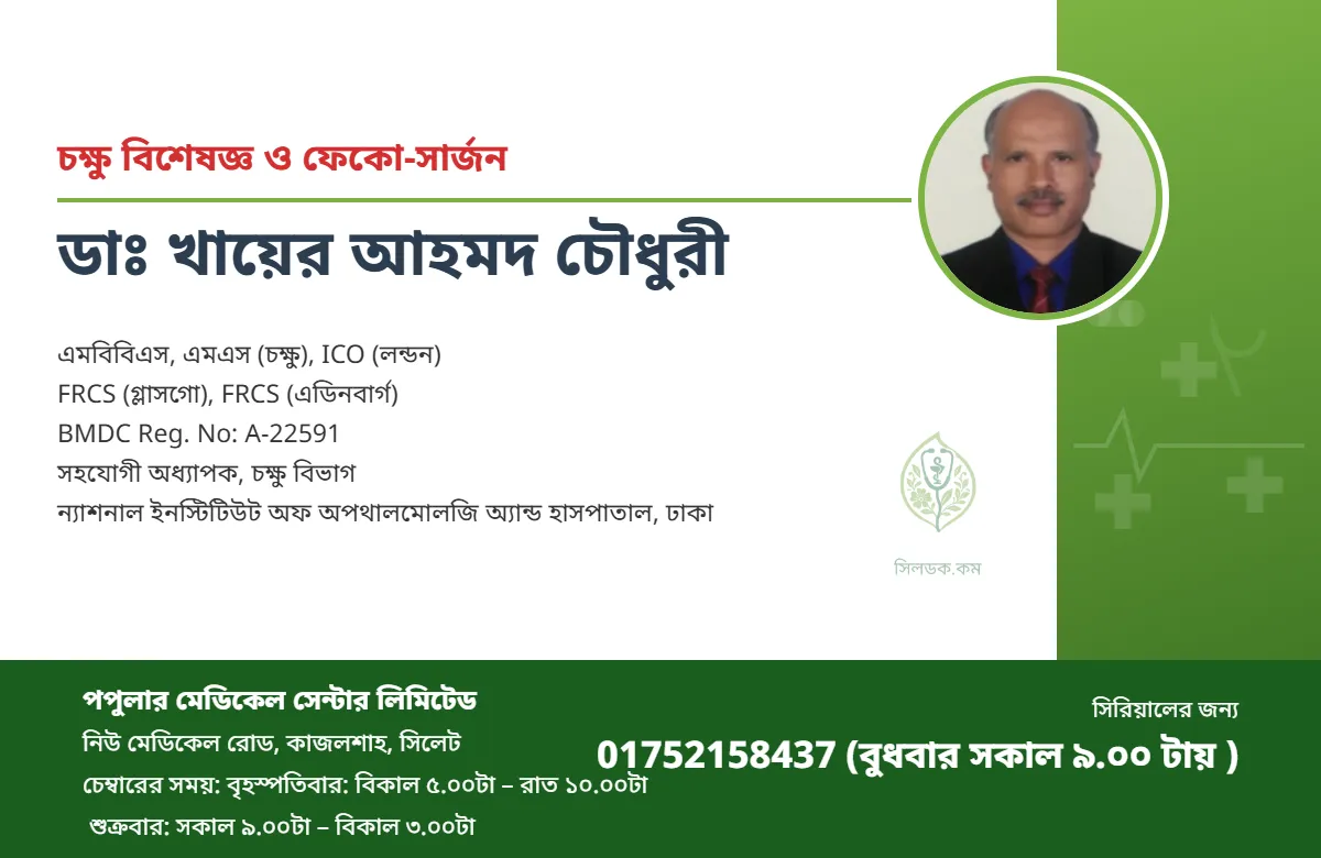 সহযোগী অধ্যাপক, চক্ষু বিভাগ ন্যাশনাল ইনস্টিটিউট অফ অপথালমোলজি অ্যান্ড হাসপাতাল, ঢাকা