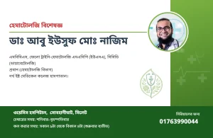 চেম্বারের সময়: শনিবার–বৃহস্পতিবার সিরিয়ালের জন্য: 01763990044 সকাল ৯টা থেকে বিকাল ৪টা (শুক্রবার ব্যতীত)