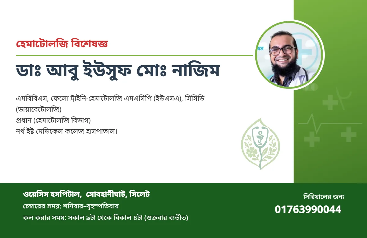 প্রধান (হেমাটোলজি বিভাগ) নর্থ ইষ্ট মেডিকেল কলেজ হাসপাতাল।
