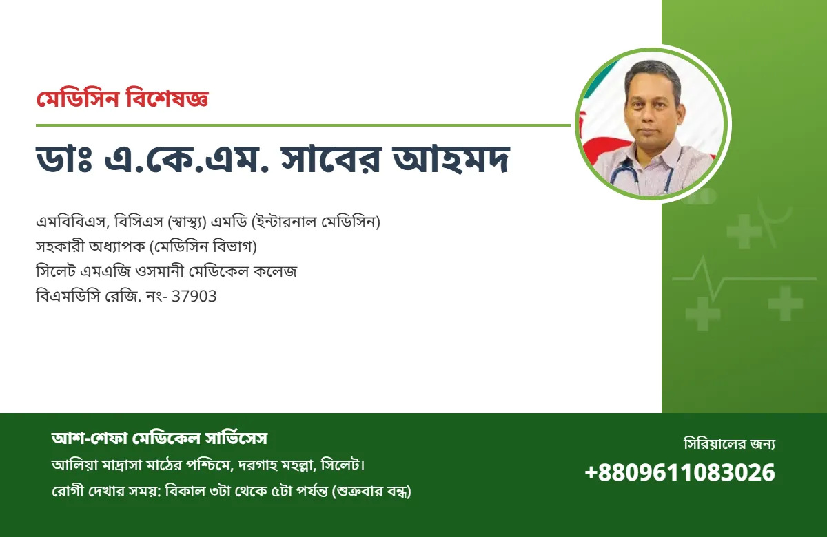 সহকারী অধ্যাপক (মেডিসিন বিভাগ) সিলেট এমএজি ওসমানী মেডিকেল কলেজ