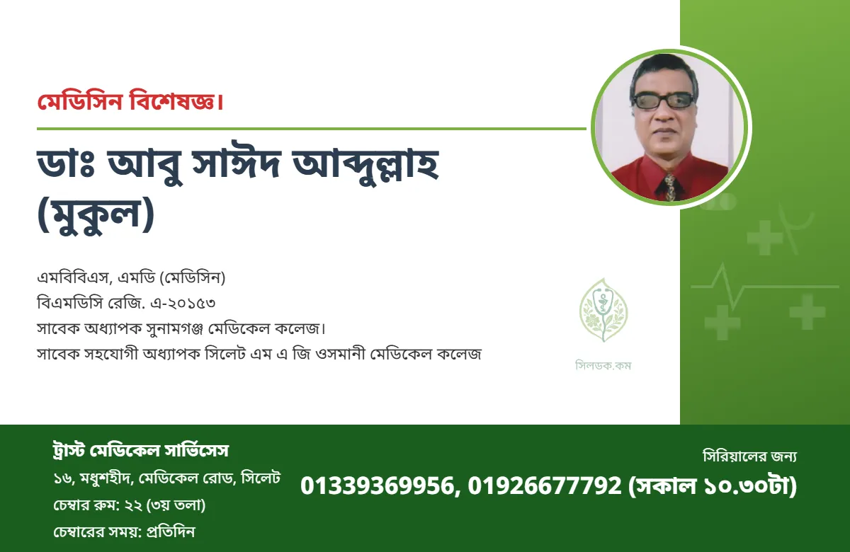 সাবেক সহযোগী অধ্যাপক সিলেট এম এ জি ওসমানী মেডিকেল কলেজ