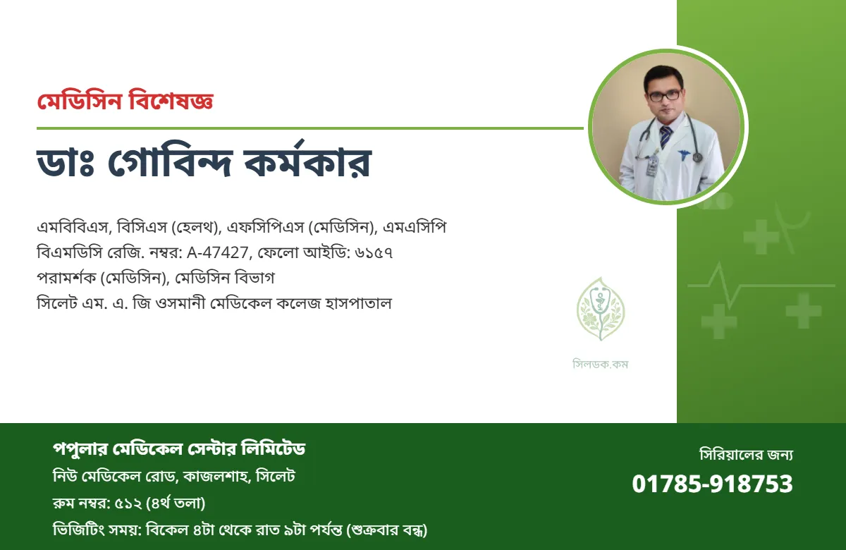 পরামর্শক (মেডিসিন) মেডিসিন বিভাগ সিলেট এম. এ. জি ওসমানী মেডিকেল কলেজ হাসপাতাল