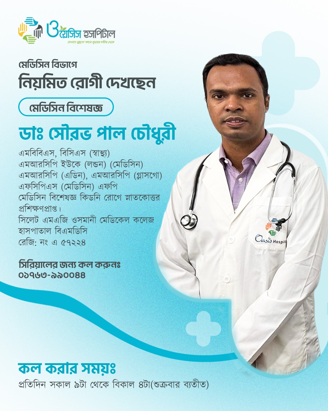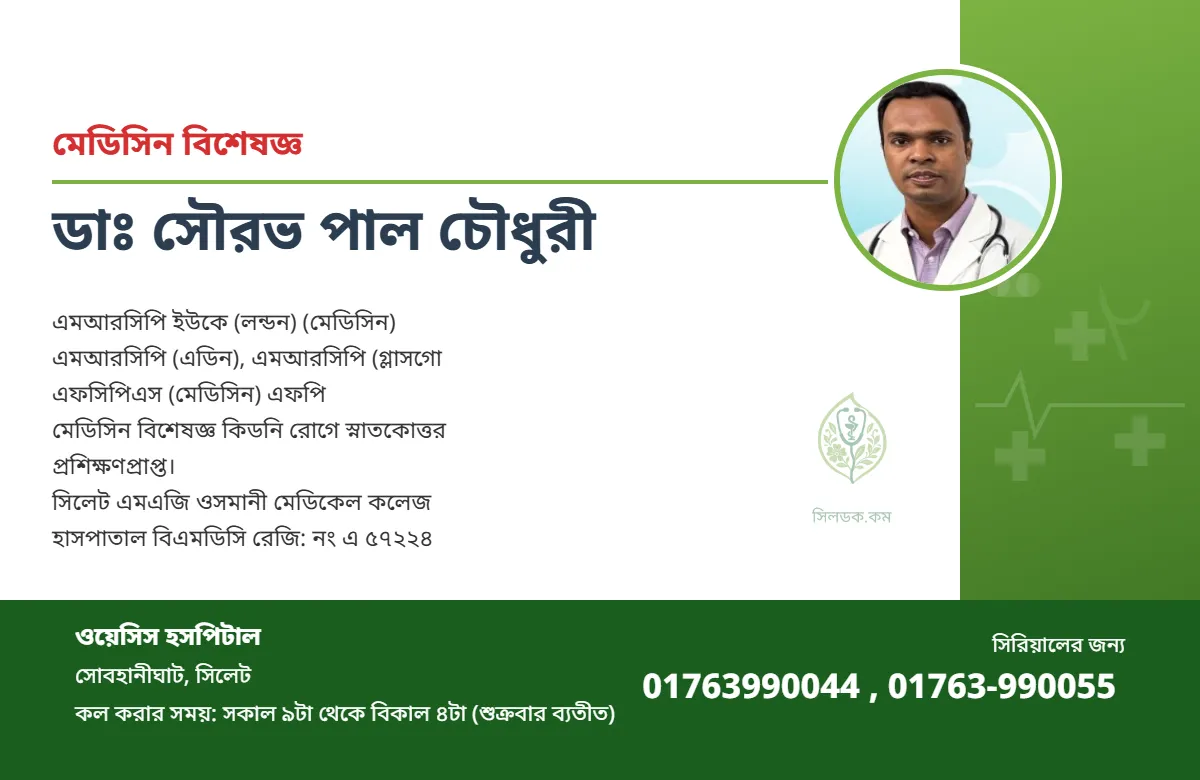 মেডিসিন বিশেষজ্ঞ কিডনি রোগে স্নাতকোত্তর প্রশিক্ষণপ্রাপ্ত। সিলেট এমএজি ওসমানী মেডিকেল কলেজ