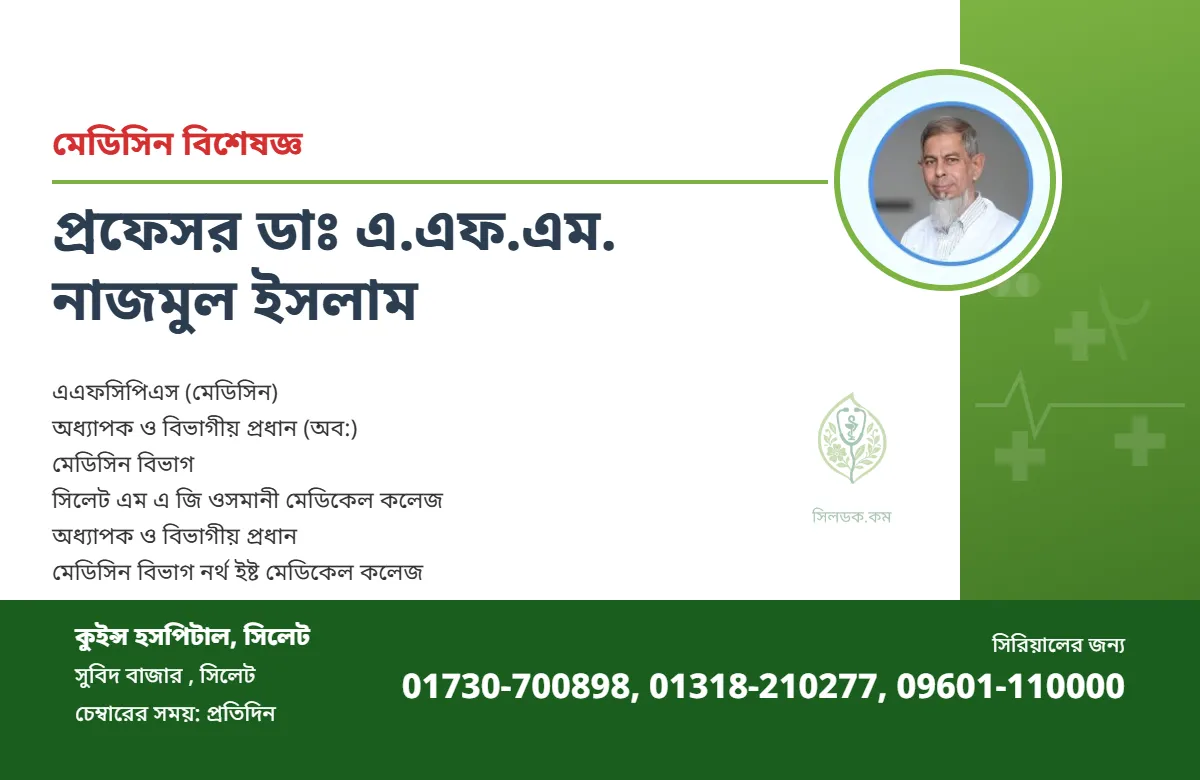 অধ্যাপক ও বিভাগীয় প্রধান মেডিসিন বিভাগ নর্থ ইষ্ট মেডিকেল কলেজ