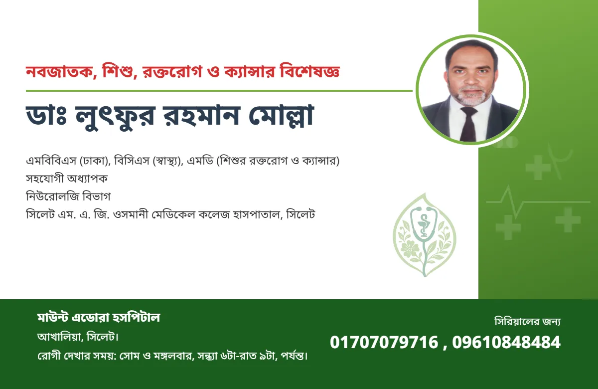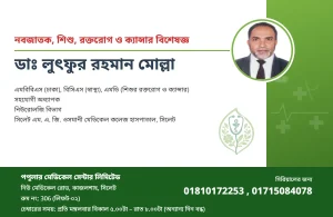 রোগী দেখার সময়: সোম ও মঙ্গলবার, সন্ধ্যা ৬টা-রাত ৯টা, পর্যন্ত।