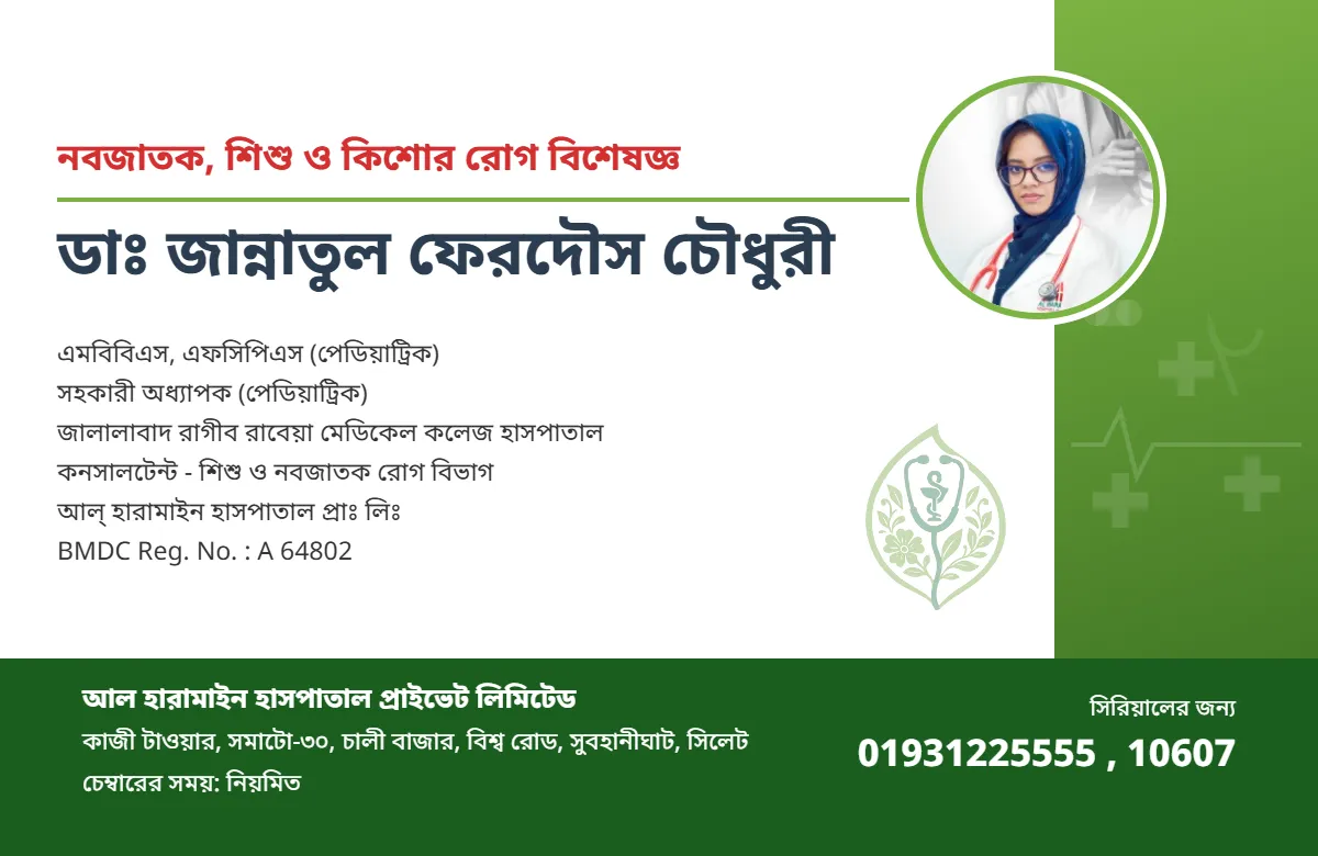 কনসালটেন্ট - শিশু ও নবজাতক রোগ বিভাগ আল্ হারামাইন হাসপাতাল প্রাঃ লিঃ