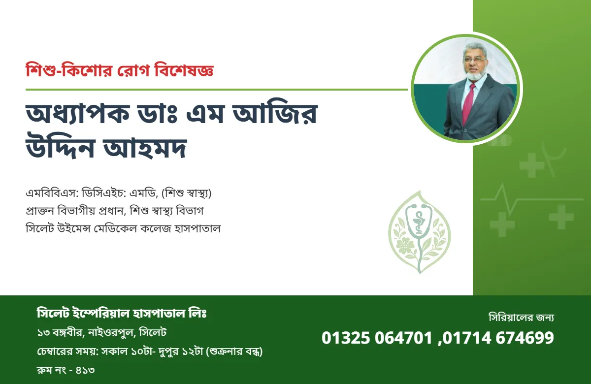 প্রাক্তন বিভাগীয় প্রধান, শিশু স্বাস্থ্য বিভাগ সিলেট উইমেন্স মেডিকেল কলেজ হাসপাতাল