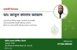 এম.বি.বি.এস, বিসিএস (স্বাস্থ্য), এফ.সি.পি.এস (সার্জারী)