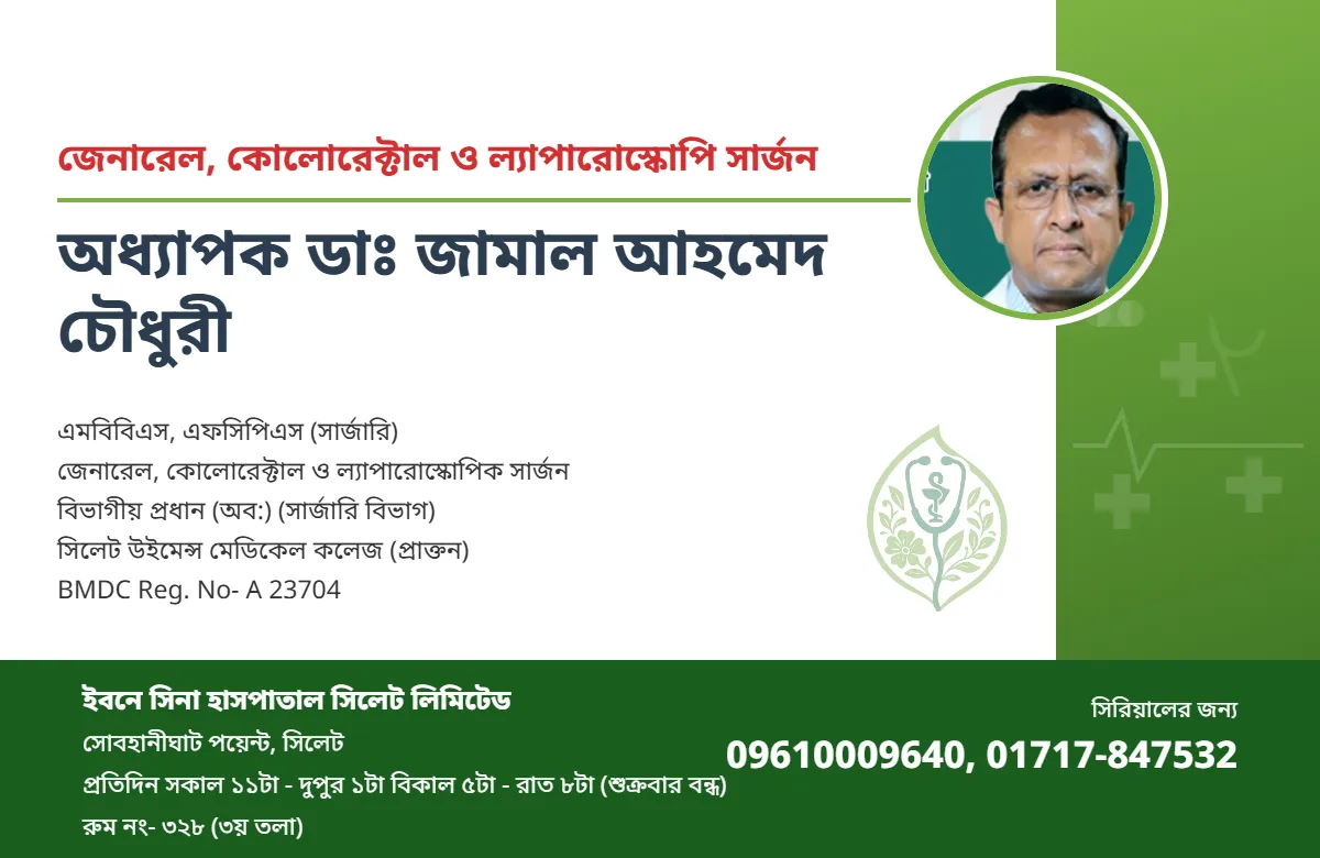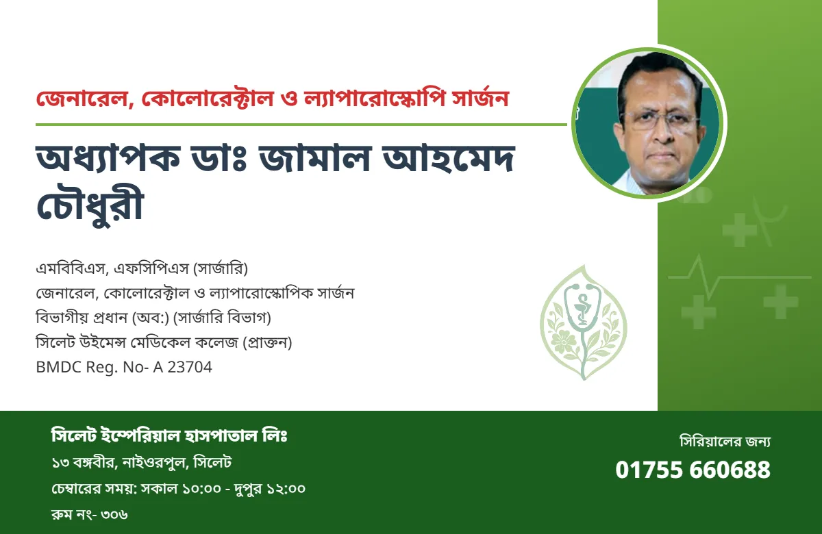 বিভাগীয় প্রধান (অব:) (সার্জারি বিভাগ) সিলেট উইমেন্স মেডিকেল কলেজ (প্রাক্তন)