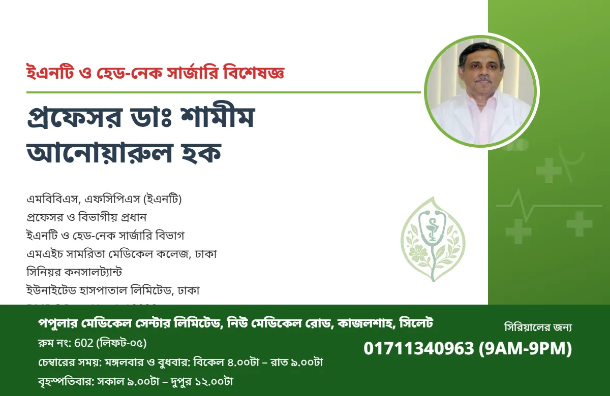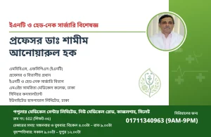 প্রফেসর ও বিভাগীয় প্রধান ইএনটি ও হেড-নেক সার্জারি বিভাগ এমএইচ সামরিতা মেডিকেল কলেজ, ঢাকা