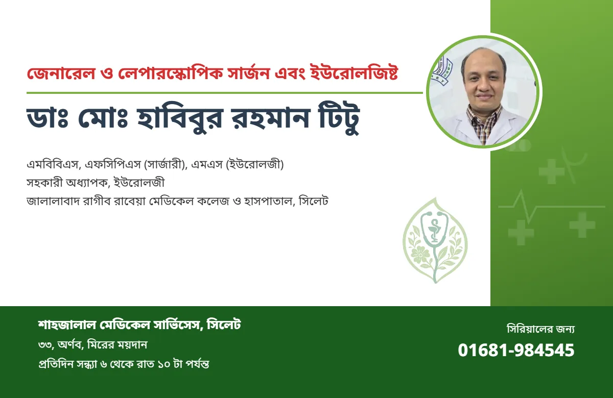 সহকারী অধ্যাপক, ইউরোলজী জালালাবাদ রাগীব রাবেয়া মেডিকেল কলেজ ও হাসপাতাল, সিলেট